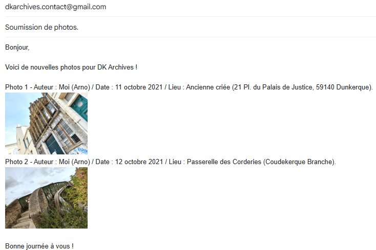 Voilà, vous avez envoyé vos photos à DK Archives ! Merci !
